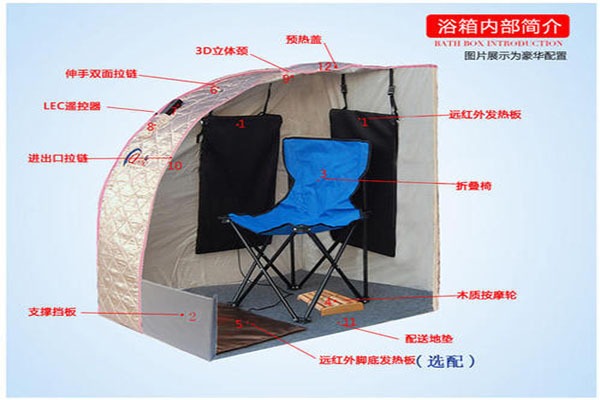 7、蒸浴美健康桑拿机,独创蒸汽散发箱,内置液态、固态熏蒸盒。多元蒸浴,安全实用。