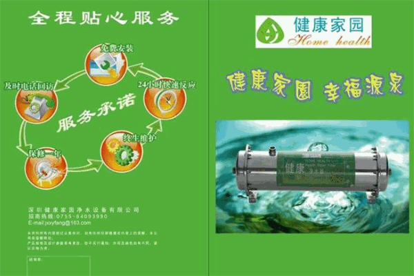 东莞家园净水科技有限公司依托雄厚的技术力量,公开的向全社会承诺:产品1年保修,终身维护。彻底解除了用户的后顾之忧,为代理商创造出更广阔的市场空间。