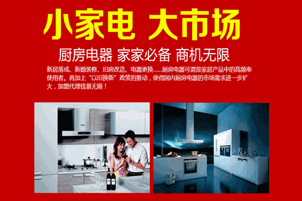 2013年热水器市场零售额达到390亿元,同比增长6.6%,燃气灶和油烟机的市场零售额可克214亿元,同比分别增长0.5%和4.8%。康家王厨房电器加盟,市场前景高。
