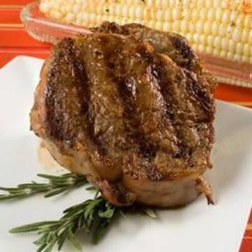 里脊牛排175克,橄榄油2汤匙,盐和现磨黑胡椒粉适量,调味用,大蒜8头,捣碎,新鲜迷迭香4根