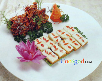 1、将鳕鱼、方包分别改成3厘米×5厘米的长方件。2、银鳕鱼腌制入味。面包件拖用蒜香汁、盐、鸡粉、蚝油、蛋液调匀的糊,入油锅炸熟,装盘,点缀盘饰,另跟沙律酱卜桌即成。