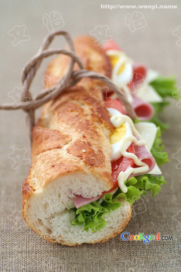 法棍半根 奶酪2片 火腿2片 鸡蛋一个 西红柿半个 生菜3片 蛋黄酱少许