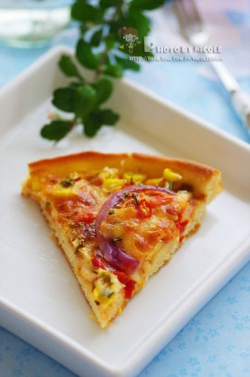 以前去必胜客时我都是喜欢要那个方的薄pizza,这回按君之方子做的真滴素美味啊~~以后就是它了。哈哈~~下次再试试沙拉酱的。