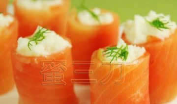 第一种:西餐菜谱烟熏三文鱼卷做法