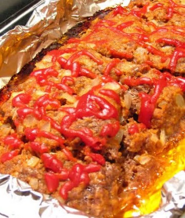 盒装肉糜2磅、鸡蛋两只、洋葱半个切粒、2杯面包糠(bread crumbs)、大约1杯茄汁。
