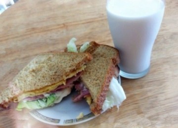 土司2片,生菜1片,雀巢炼奶1支,鸡蛋1个,午餐肉1支.