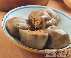 (5)将粿糰分为20等份,分别包入咸绿豆馅与高丽菜馅料,最后以中火蒸约15分钟即可。
