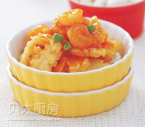 第一种:小吃菜谱番茄虾仁锅巴做法