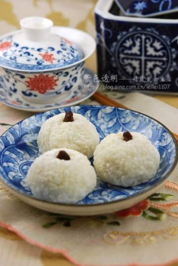 三 蒸好糯米的放凉后,分成小团,包入红豆沙,最后滚上甜椰蓉。