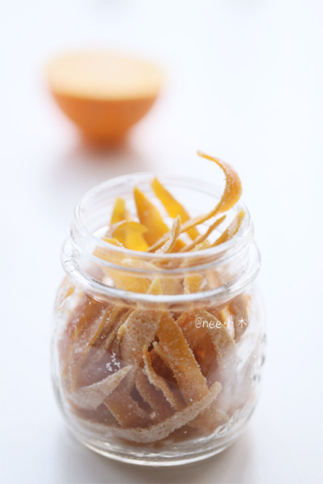 1、我采用浸泡的方法取出苦味也可行,因为橙皮每天攒下来的,先剥下来的就投入水中,橙皮的浸泡时间不同,最后一天放进去的也泡了一天一晚,所以成品并不苦。