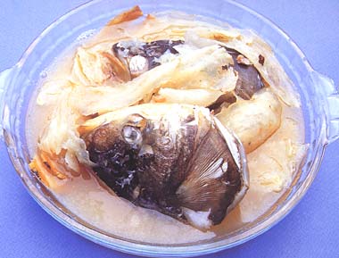 2、过了油煎的鱼头,一定要放入沸水中炖煮,因为那样会使汤色很浓白;这个方法也适用于做各种鱼汤。
