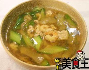第二种:汤类菜谱材料:里肌肉100克,黄瓜2条,葱1支,香菜1棵,榨菜5-6片,虾米2大匙,太白粉少许,做法