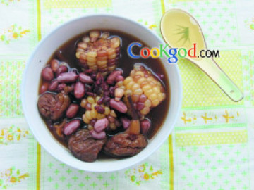 材料:无花果干:200克赤小豆:100克黑玉米:2条花生仁:150克水:6碗3-4人份