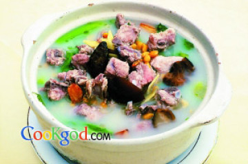 3.所有材料入锅一起加水烧开,文火煮二小时,加盐鸡精调味就好。