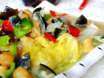 大白菜、皮蛋、扇贝丁、青红椒、洋葱