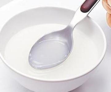 按1匙米粉加入3-4匙温水的比例,静置后,用小匙按照顺时针方向调成糊状。