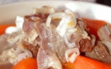 主料:羊骨头(后腿或者羊排,带肉)1000克、胡萝卜500克、洋葱少许
