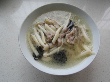 第二种:汤类菜谱海鲜菇木耳肉丝汤做法