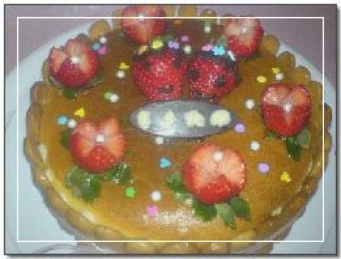 装饰用了自制的手指饼围边,表面放切成花朵的草莓和彩糖装饰,乍一看象一个花圃,很自然的让我想起了一首歌“我们的祖国是花园,花园的花朵真鲜艳.....”,侄孙女垚垚就是那祖国含苞的花骨朵,生日快乐!快高长大。