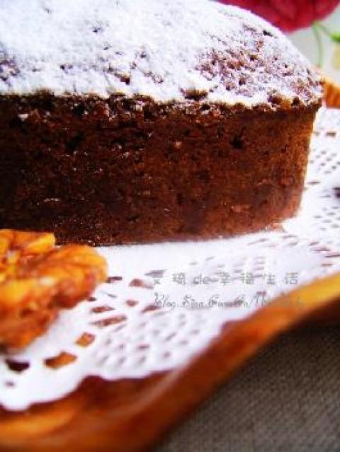 1.里面的核桃仁可以用葡萄干、榛子、杏仁、腰果等喜欢的干果代替。 2.用料中的黑巧克力可用80g左右的可可粉代替。 3.取出后晾凉脱模,无需倒扣。 4.在成品上筛一层防潮糖粉,使蛋糕口感细腻香甜,不干瘪。