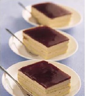 7.食用前再淋上淋酱,待淋酱稍凝结后即可脱模切块盛盘食用。