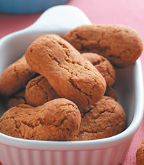 3.将面糰分切成每个约15公克重的小面糰,再用手搓揉成椭圆形状后放入烤盘中,以上火180℃、下火150℃烤约18分钟即可。