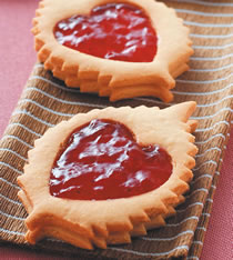 奶油250公克,糖粉150公克,全蛋2个,低筋面粉570公克,小苏打1小匙,香草水10公克,兰姆酒10公克,杏仁粉160公克,草莓酱适量