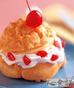 8.将作法4烤好的泡芙从侧面切开1/2,先挤入打发的鲜奶油,再挤入作法7的内馅即可。