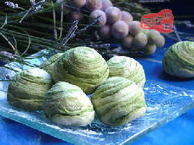 主料:水油皮高粉25克,低粉60克,糖粉20克,融化的黄油25克,水35克。油酥低粉60克,绿茶粉1克,融化的黄油30克。