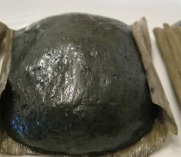 2、芭蕉叶剪小片,抹一层油,把糯米团搓成小圆球放在芭蕉叶上,蒸熟。