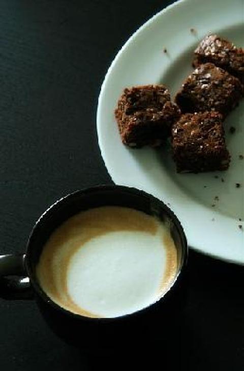 杏仁布朗尼,黄油,巧克力,青豆,咖啡