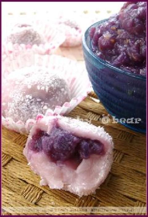 第一种:甜品菜谱桂花紫薯麻薯做法