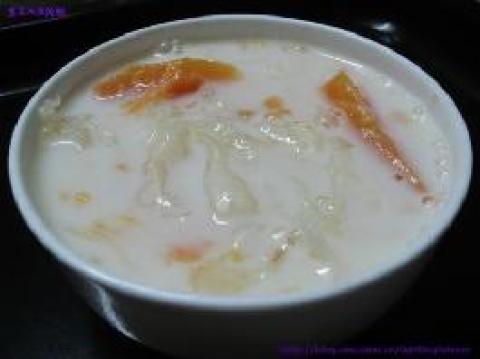 第一种:甜品菜谱雪耳木瓜炖奶做法