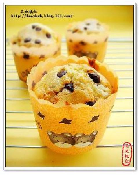 5.装入纸杯内至7-8分满,表面撒巧克力豆。
