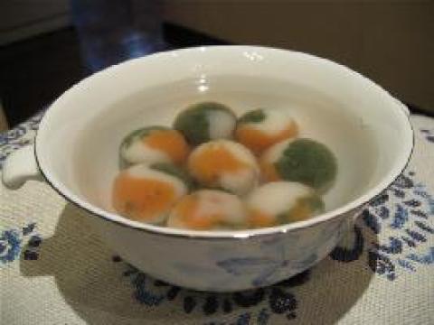 第一种:甜品菜谱彩色杏仁糖汤圆做法