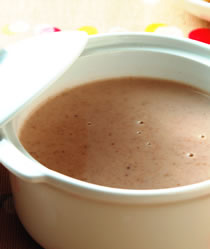 2、将锅内水烧沸,加入白糖,待全部溶化后,过滤去渣,再烧沸,将核桃茸慢慢倒入锅内,不断推动成露,待熟后,装入碗内即可。