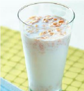 1.鲜奶以微波炉加热成温热的鲜奶后,倒入2大匙什锦果麦杯,均匀搅拌即可。
