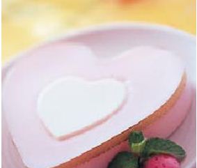 2.冷开水加细砂糖拌匀,用小火加热至砂糖完全溶解,再加入优格拌匀,最后加入泡软的吉利丁煮至融化,即可趁热倒入小的心型模型,等冷却定型后扣出备用。