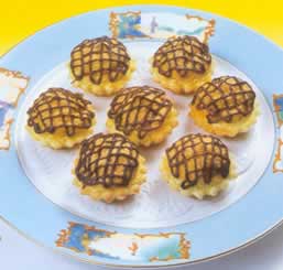 1.面粉、黄油、白糖、鸡蛋、泡打粉和成松酥面,擀成片,放入盏中捏好,排列在烤盘中,放入烤箱用180度的温度烤成金黄色取出,冷却待用。