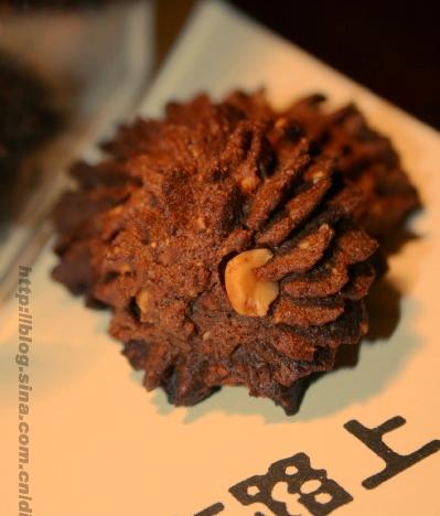 黄油120g,红糖120g,低粉270g,可可粉30g,小苏打2g,全蛋90g(2个),花生100g