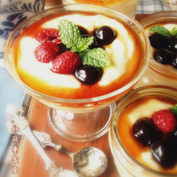 3、打匀的薯泥入杯,放冰箱冷藏室至自己喜欢的温度,入糖浆,再饰覆盆子或其它水果就ok啦!