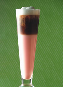 3.缓缓将义式浓缩咖啡倒入作法2杯中,作出分层效果即可。