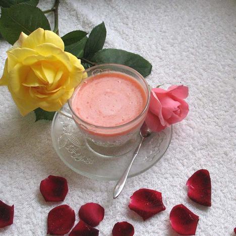 新鲜草莓250克,益生菌酸牛奶150克,雀巢炼乳1勺