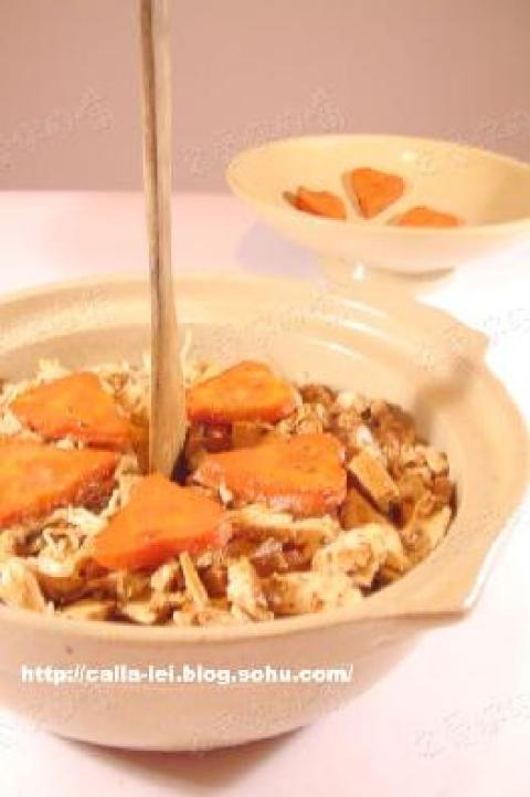 注意一定要小火,胡萝卜汤汁也要稍微多点,直到焖到水份蒸发完了,底油把和着汤汁的米饭煎成薄薄的锅巴。 那叫一个香啊!胡萝卜可以用其他的蔬菜等代替,只要有足够的汤汁浇在饭上。