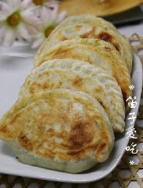韭菜盒子也可用两张皮对包,捏成圆形花边的盒子。