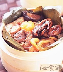 第一种:主食菜谱荷叶蚝干蒸饭做法
