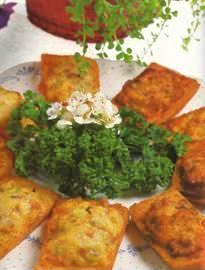 2、炸吐司时用中火即成,以免吐司炸焦了,上面的料还没熟。