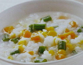 豆薯粥、红薯粥、红糖黑米粥、牡蛎肉末粥、玫瑰花粥