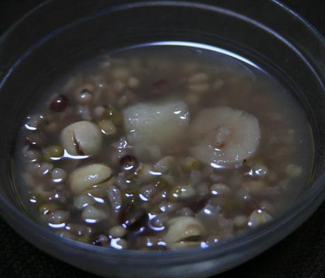 山药(半根),薏米(一把),鲜百合,莲子(带芯)少许,红枣5枚,枸杞少许,红小豆(我自己放的,不在中医的方子中)