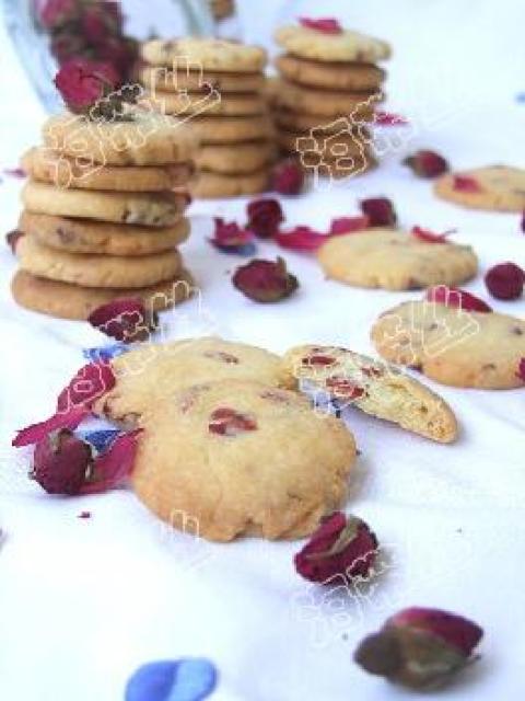 低筋面粉100克,玉米淀粉20克,糖粉30-40克,黄油90克,干玫瑰花茶8克